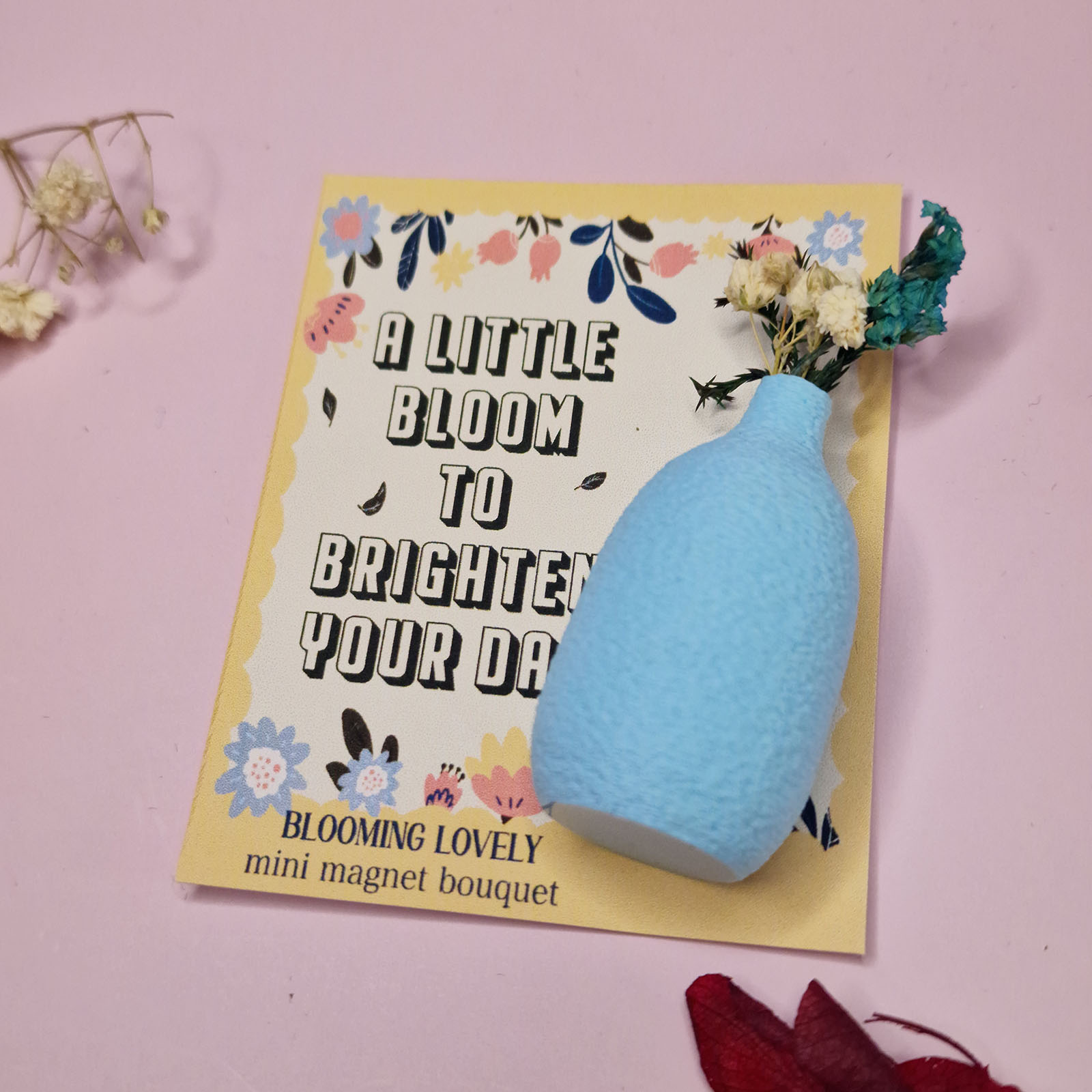 Bring a dash of sunshine to someone’s desk, kitchen, or bedside with this Blooming Lovely Mini Magnetic Vase. Each comes with a delicate dried flower nestled in a gift box, ready to lift spirits. The perfect tiny gift to remind someone that little things can make a big difference.