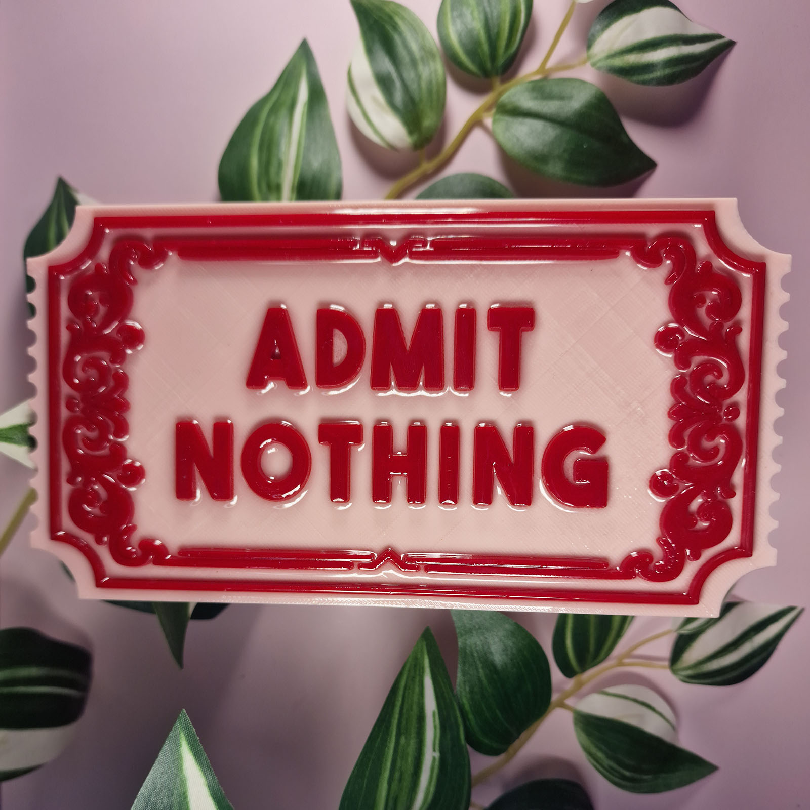 Admit Nothing Ticket SignAvailability: 6 in stock