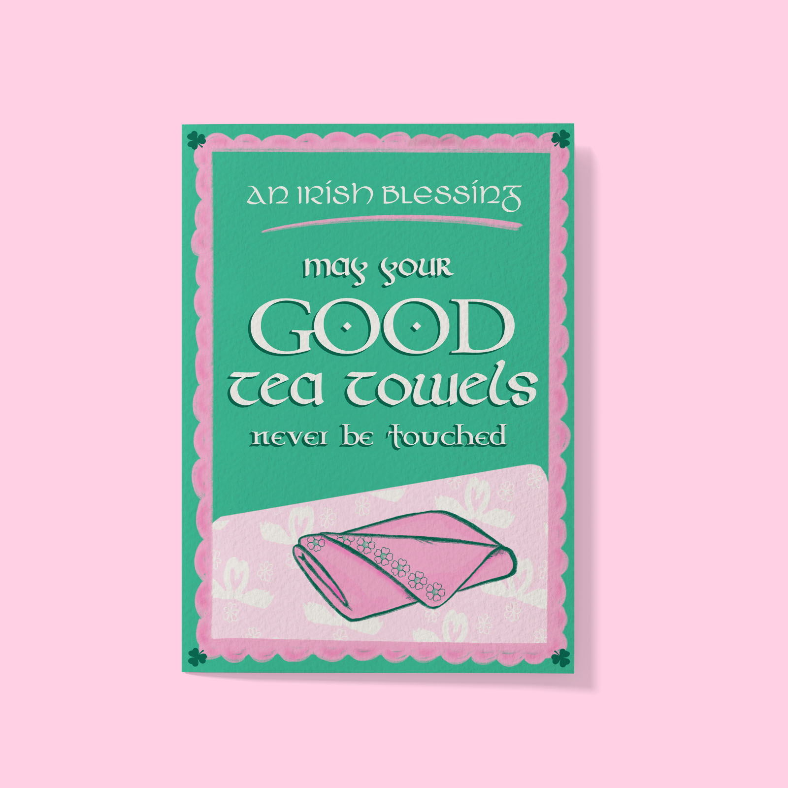 “May Your Good Tea Towels Never Be Touched” – Handmade & Designed Gift Card.