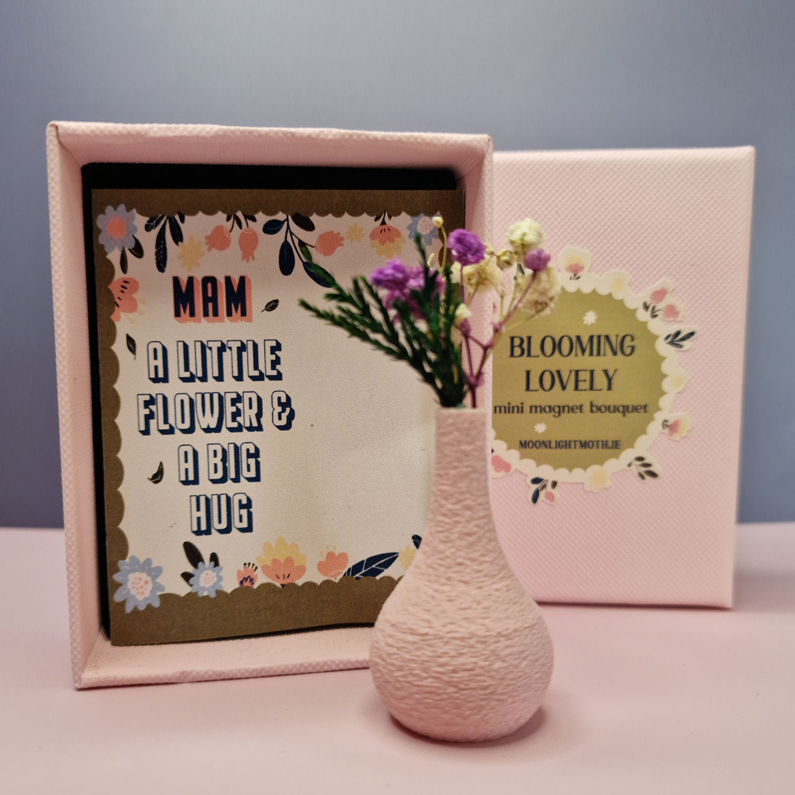 Show Mum she’s loved with this charming Blooming Lovely Mini Magnetic Vase. Featuring a dried bloom in a gift-ready box, it’s a tiny hug she can see every day. Perfect for Mother’s Day, birthdays, or just because.