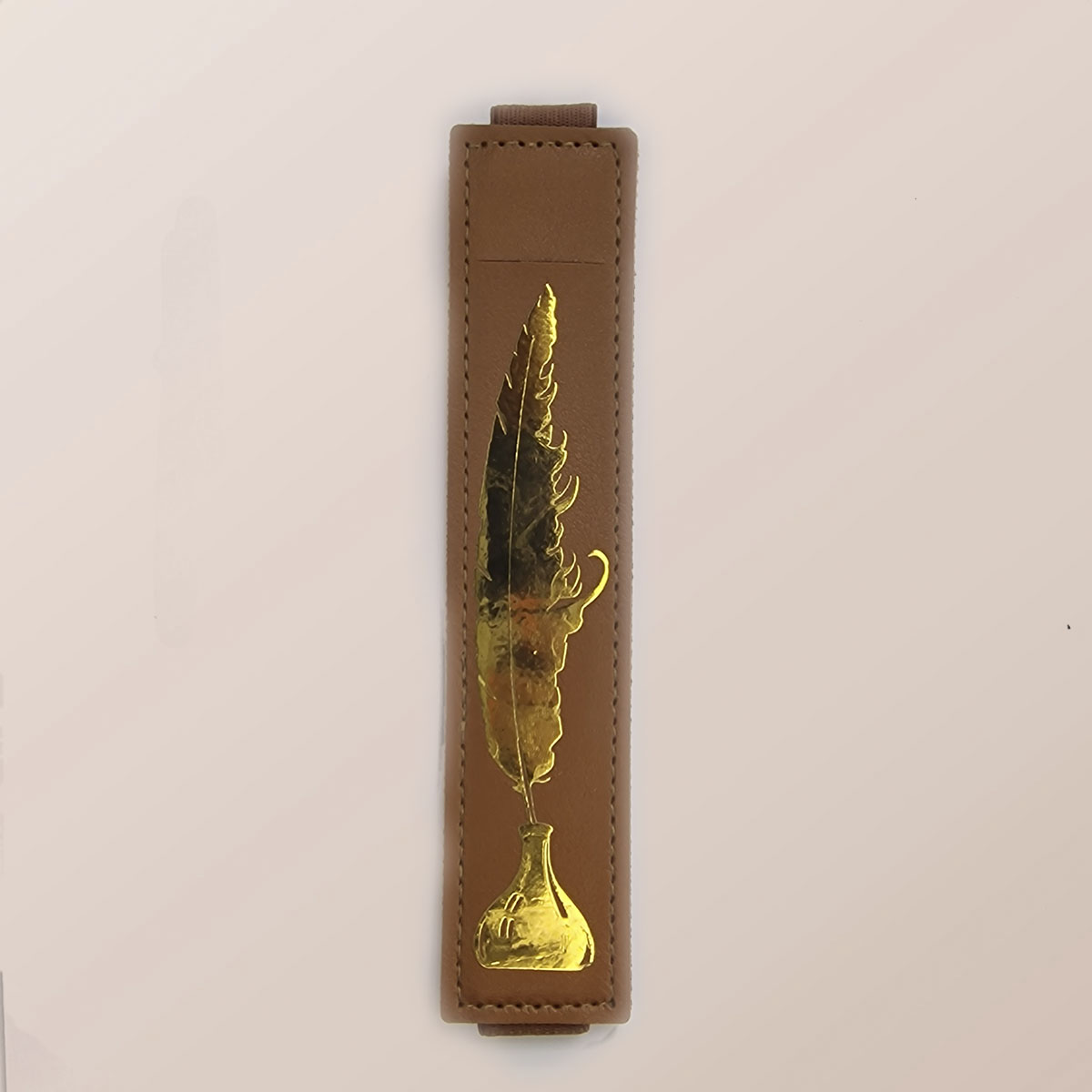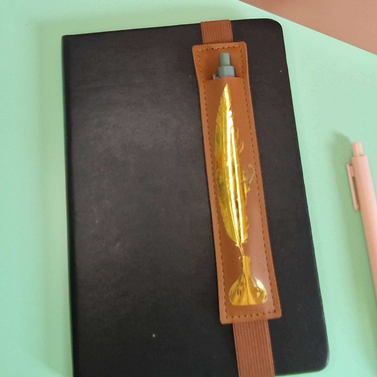 Keep your pen stylishly at the ready with this beautifully crafted brown notebook pen holder featuring a metallic gold quill and inkpot design. Whether you’re writing poetry, planning your week, or pretending you’re drafting a letter from a candlelit desk, this accessory blends classic charm with practical flair.
