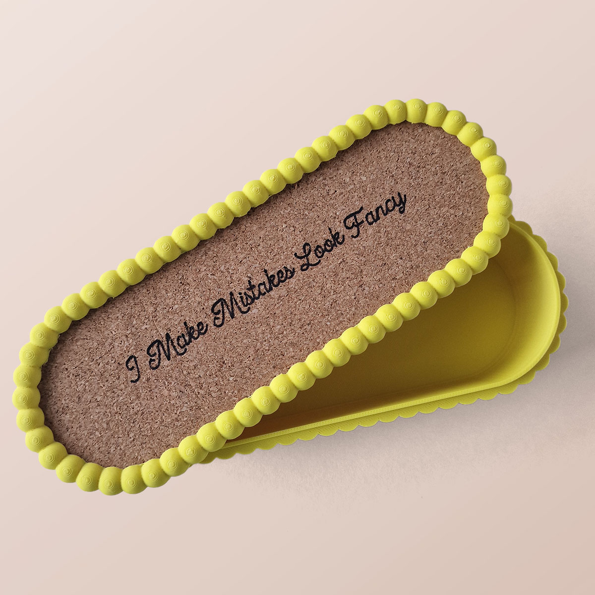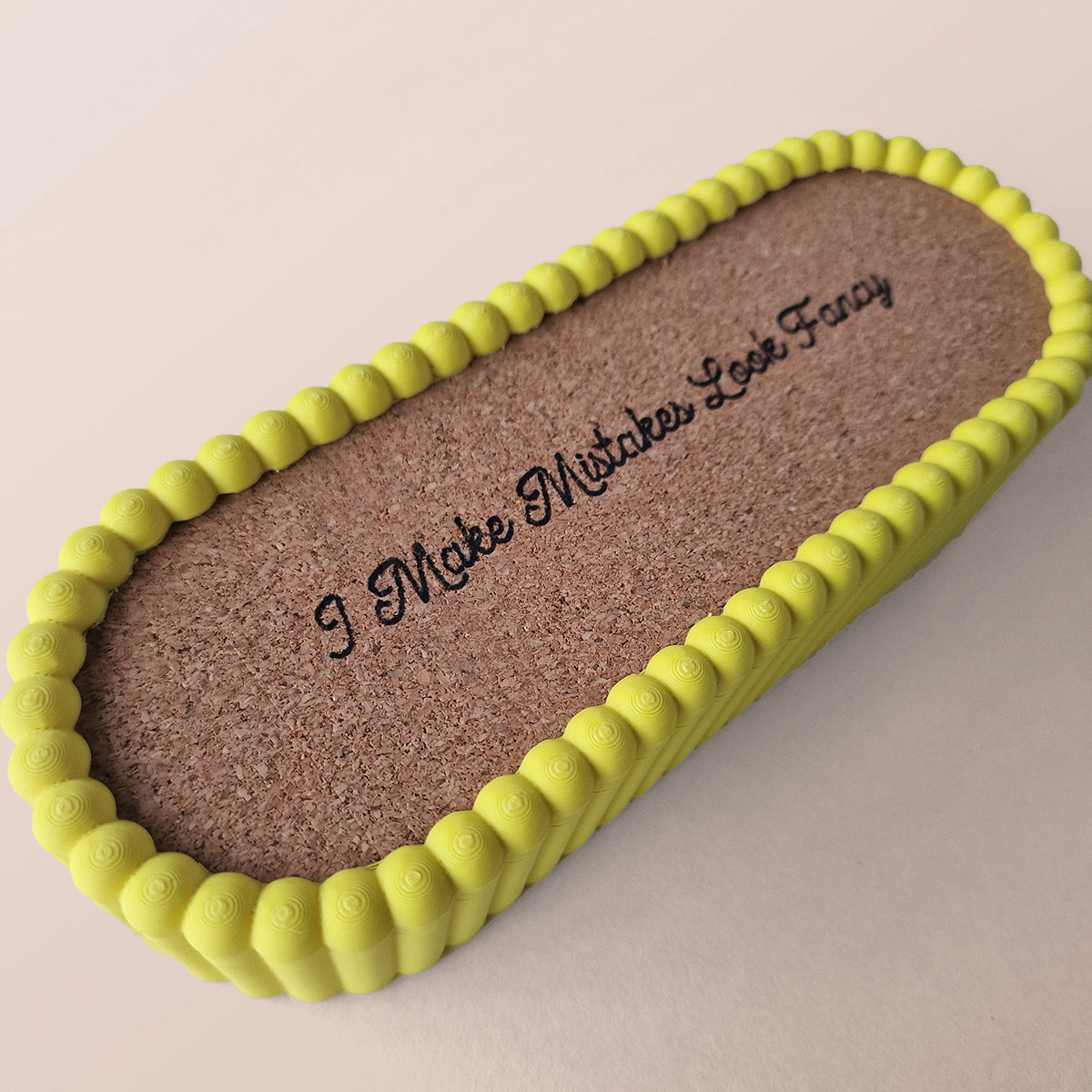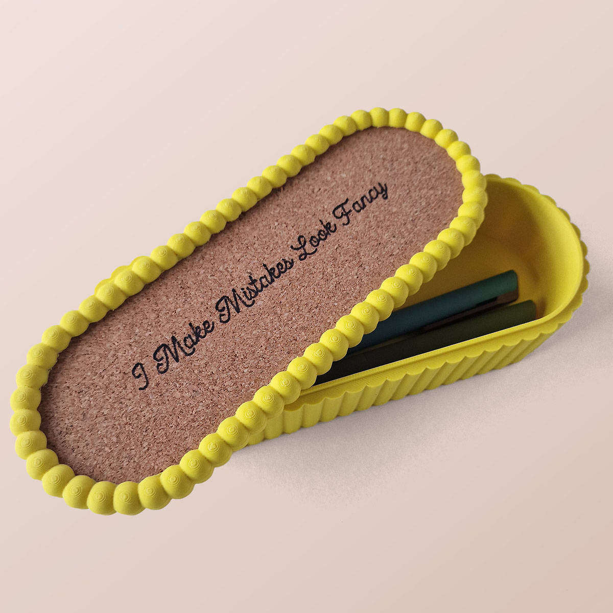 Keep your stationery organised with this stylish pen case! Featuring a unique beaded design and a cork lid engraved with “I Make Mistakes Look Fancy” it’s perfect for pens, pencils, and small accessories. A fun and functional gift for writers, artists, and stationery lovers!