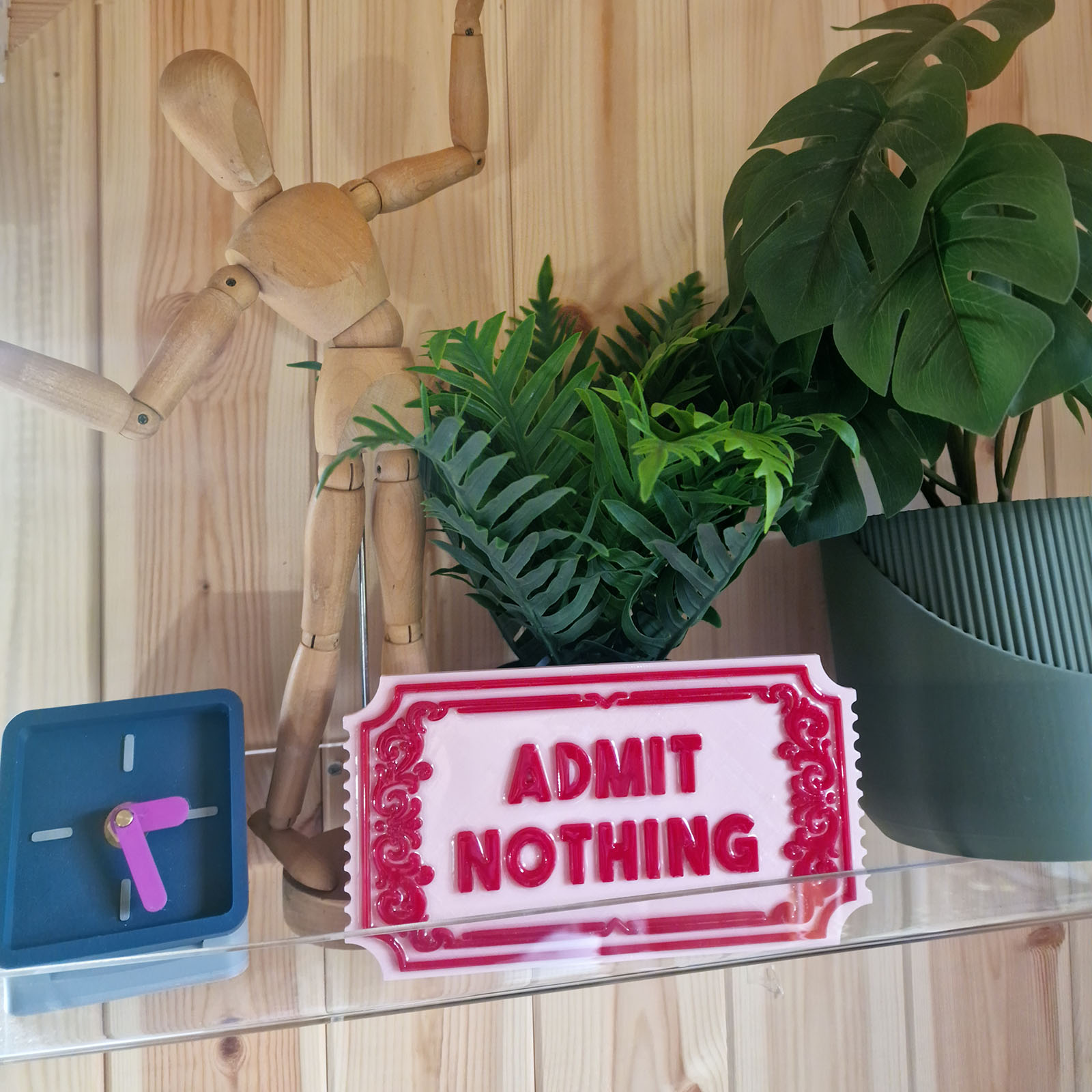 Add a touch of wit to any shelf or metal surface with these Cheeky Ticket Signs. Each 20cm x 10cm plaque is 3D printed, finished with glossy resin, and has magnets on the back so it can stand or stick anywhere. Four playful sayings let you pick the perfect ticket for your space or gift.