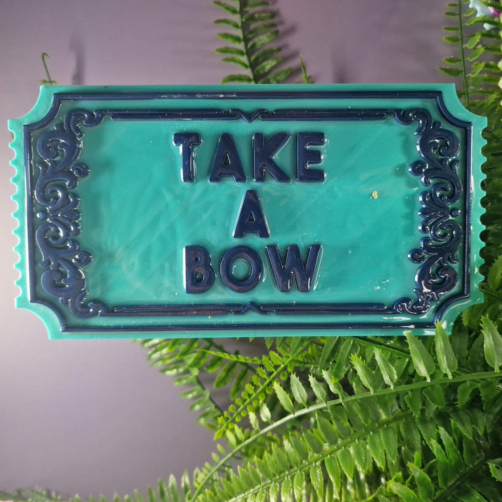 Celebrate in style. The Take a Bow sign is a tiny nod to triumph, drama, or everyday flair.