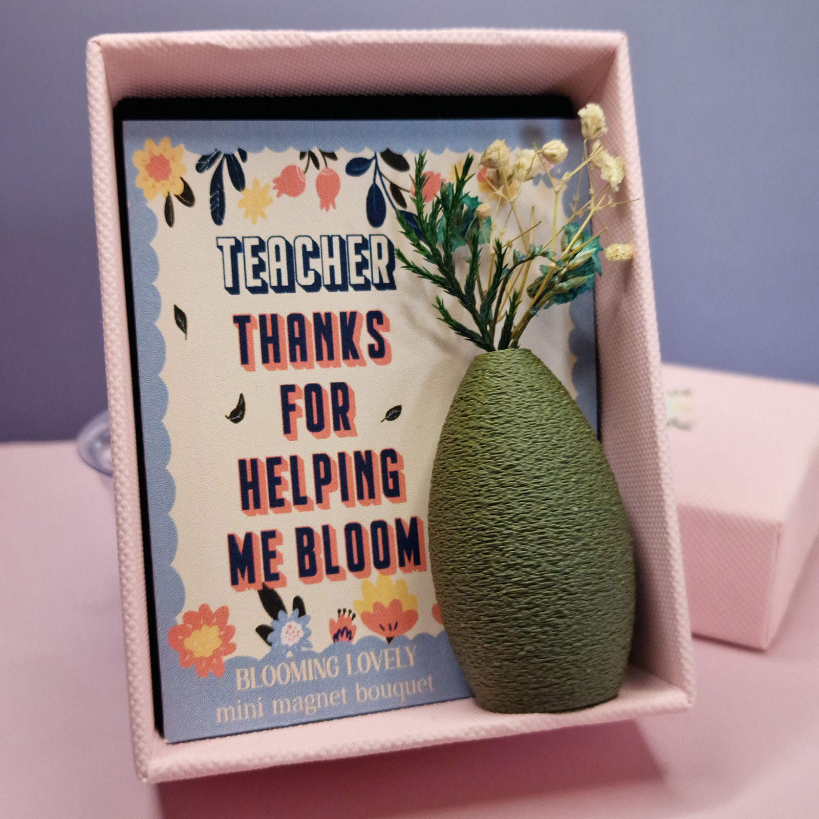 Say thank you to that inspiring teacher with this adorable Blooming Lovely Mini Magnetic Vase. Each vase holds a dried flower in a gift box, a tiny token of gratitude that sticks around as a daily reminder of their impact.