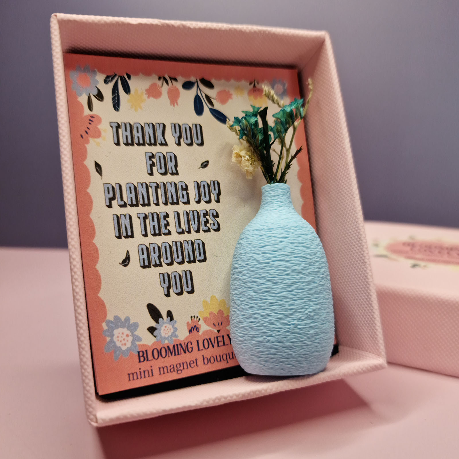 Perfect for friends, colleagues, or anyone who spreads happiness, this Blooming Lovely Mini Magnetic Vase carries a dried flower in a gift box, a small but meaningful gesture to show your gratitude.
