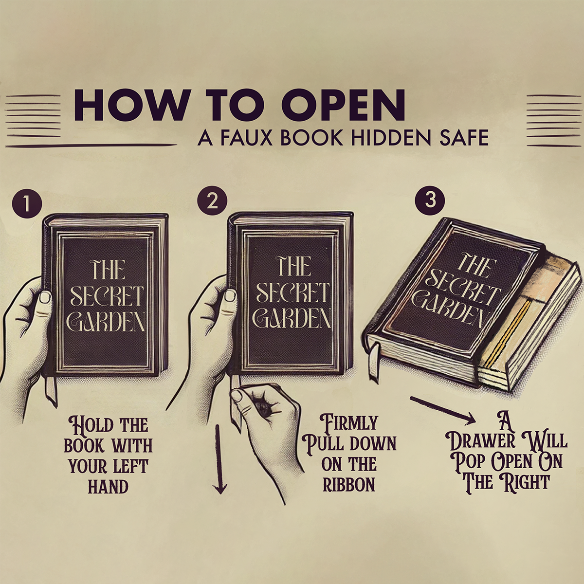 Step into a world of wonder with The Secret Garden faux book! Disguised as a charming vintage novel, this beautifully crafted secret storage box hides a little magic within. Gently pull the ribbon, and a hidden drawer slides open—perfect for stashing jewellery, love notes, or tiny treasures.