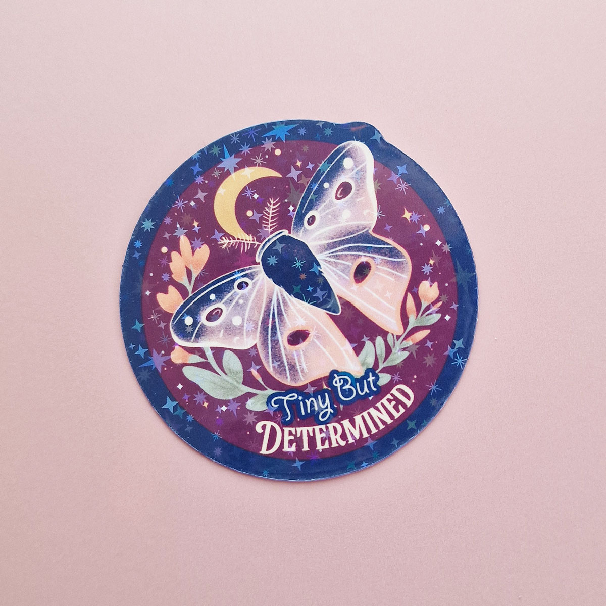 Proof that the smallest things can be the fiercest. This warm burgundy-toned sticker with soft florals and a confident little moth reminds you that even tiny wings can make powerful moves.