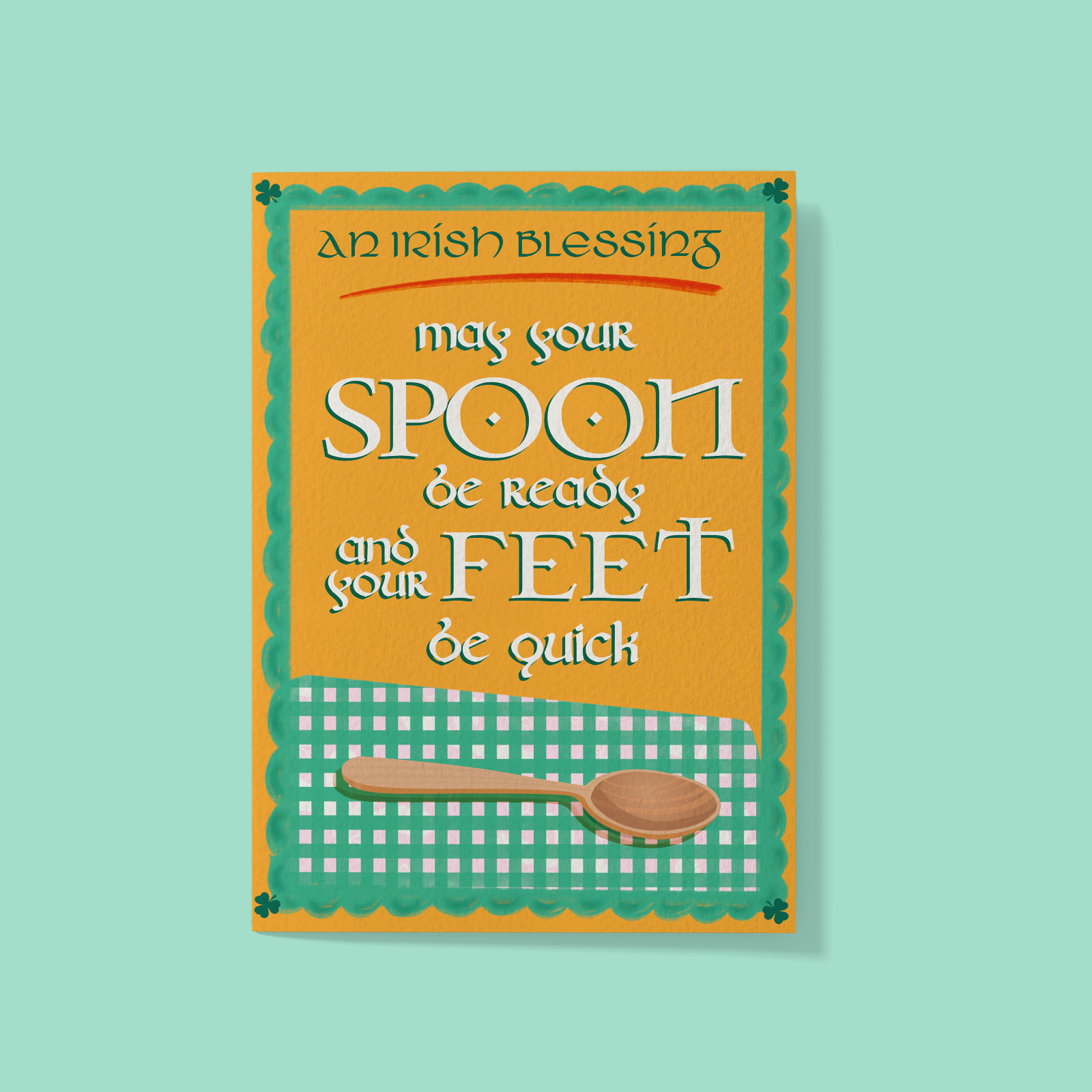 “May Your Spoon Be Near And Your Feet Be Quick” – Handmade & Designed Gift Card